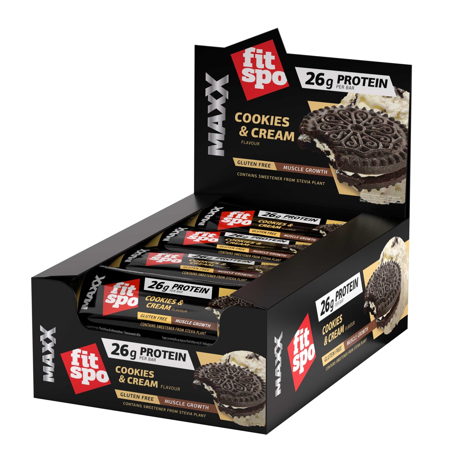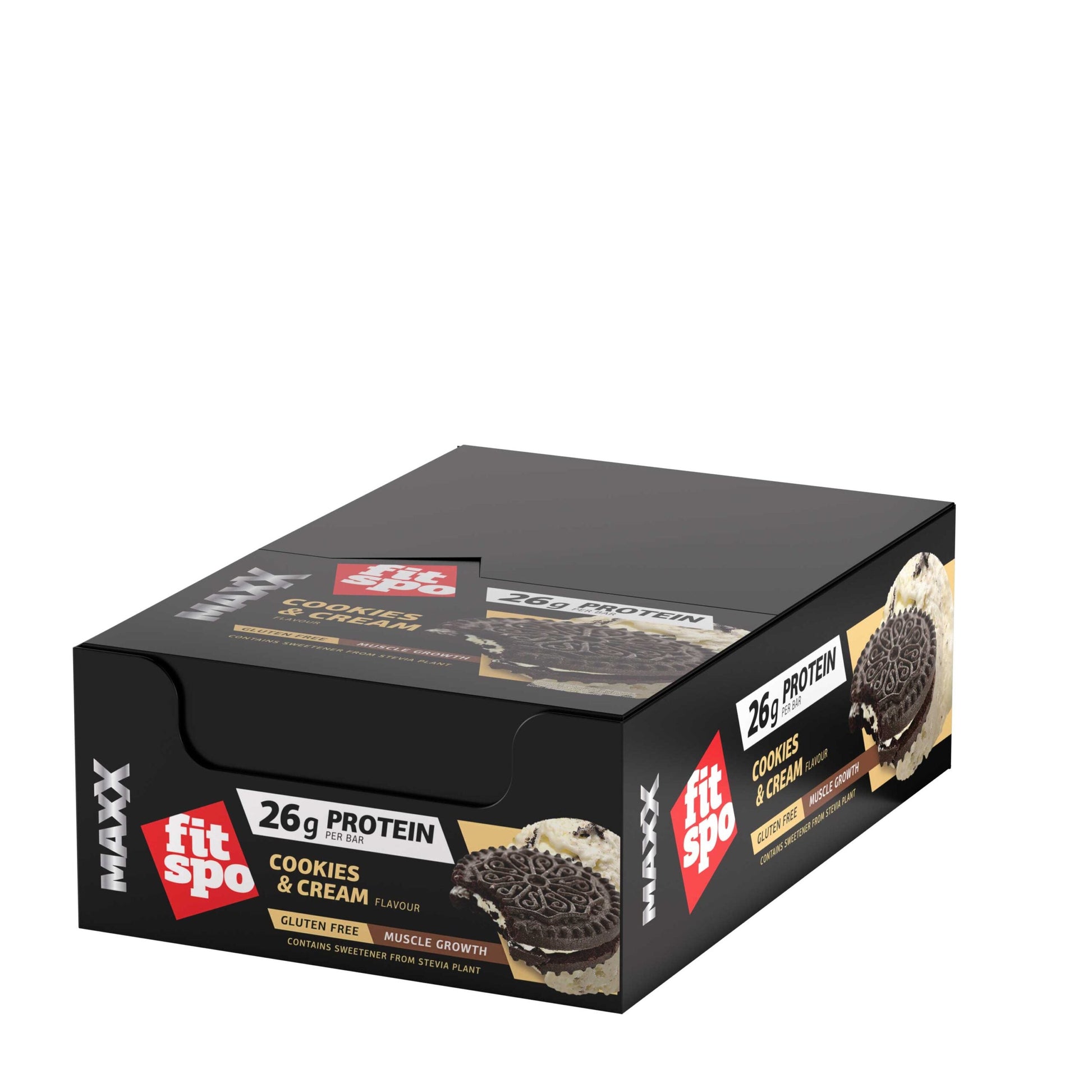 Barra de proteínas FitSpo Maxx 26g de proteína, 75g (PVPR: 2,50€/unidad 29.9€/caja de 12)