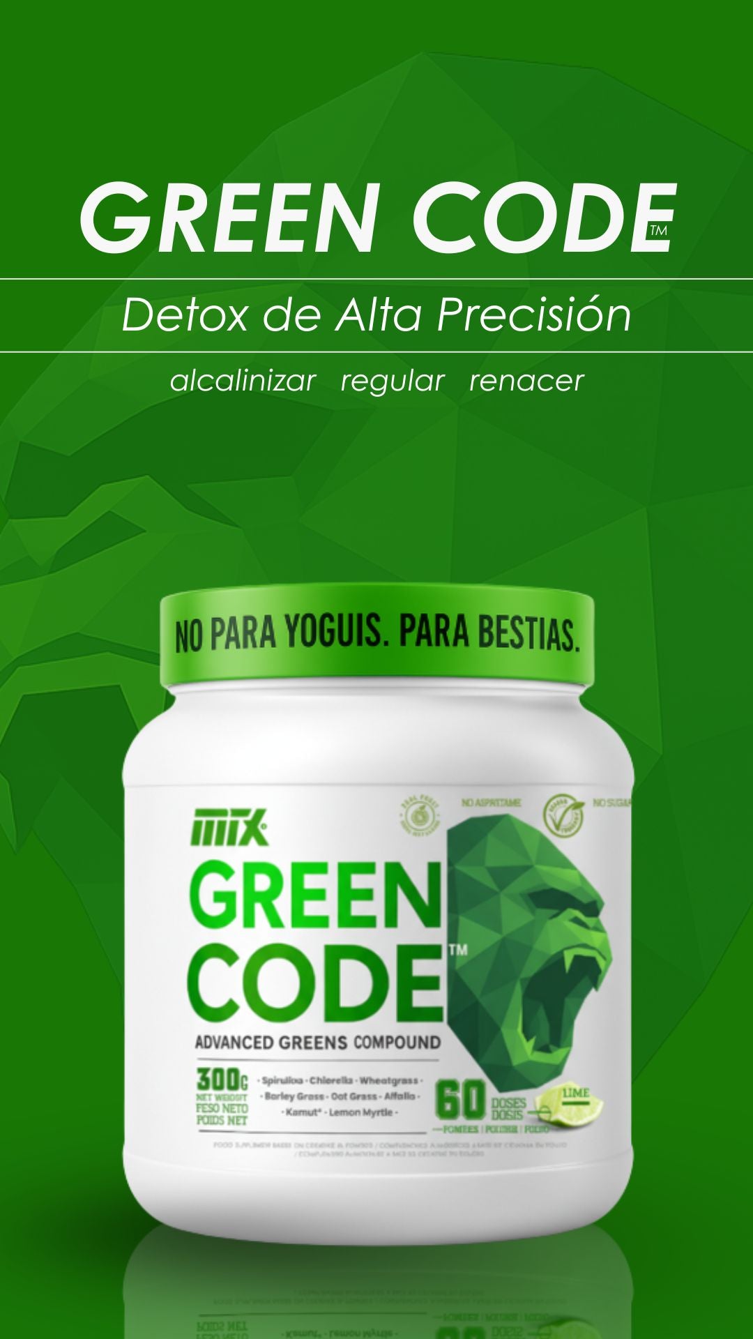 GREENCODE™ es mucho más que un Green´s detox. Es un compuesto vegetal funcional, desarrollado para atletas y personas activas que entrenan fuerte, comen mucho y exigen mucho.