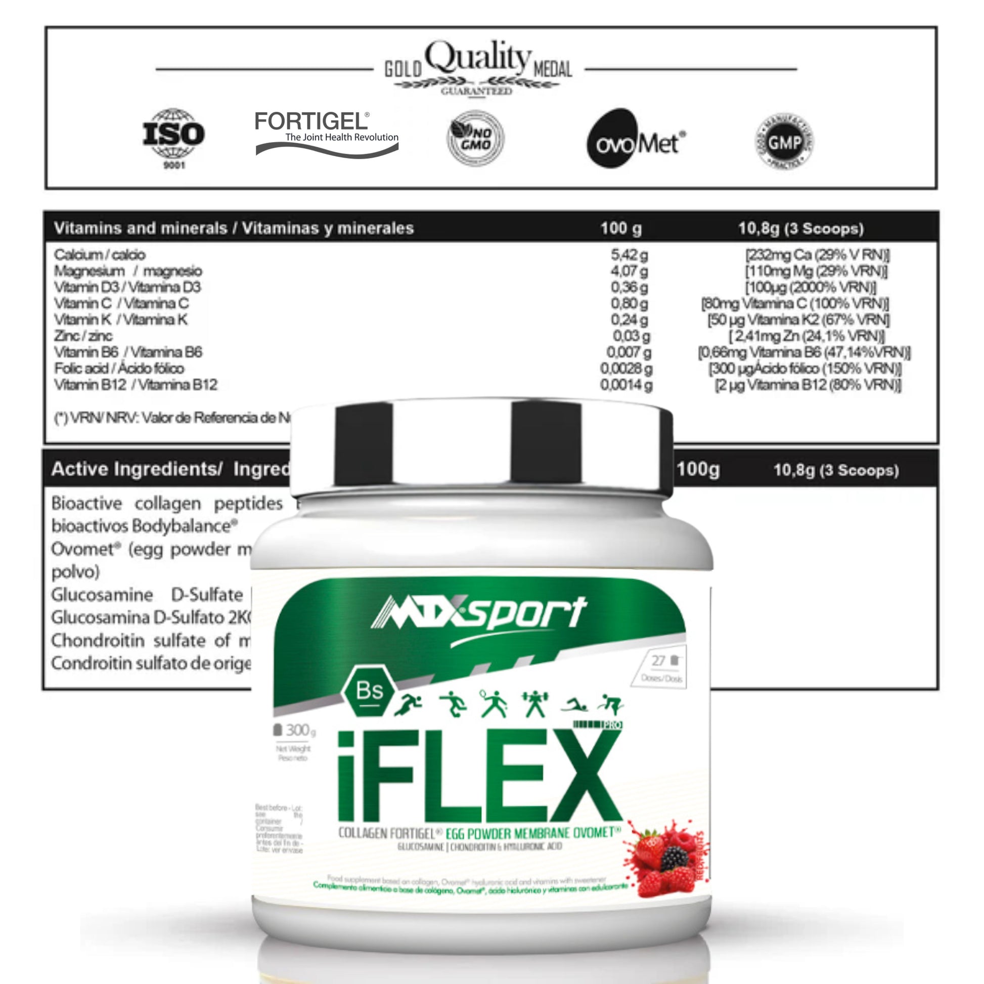 - IFLEX COLLAGEN PRO™ de MTXsport es un compuesto con una mezcla de nutrientes de alta tecnología que mantiene la integridad y el correcto funcionamiento de las articulaciones, atenúa los dolores articulares y frena el desarrollo de la degeneración del cartílago en la osteoartritis.